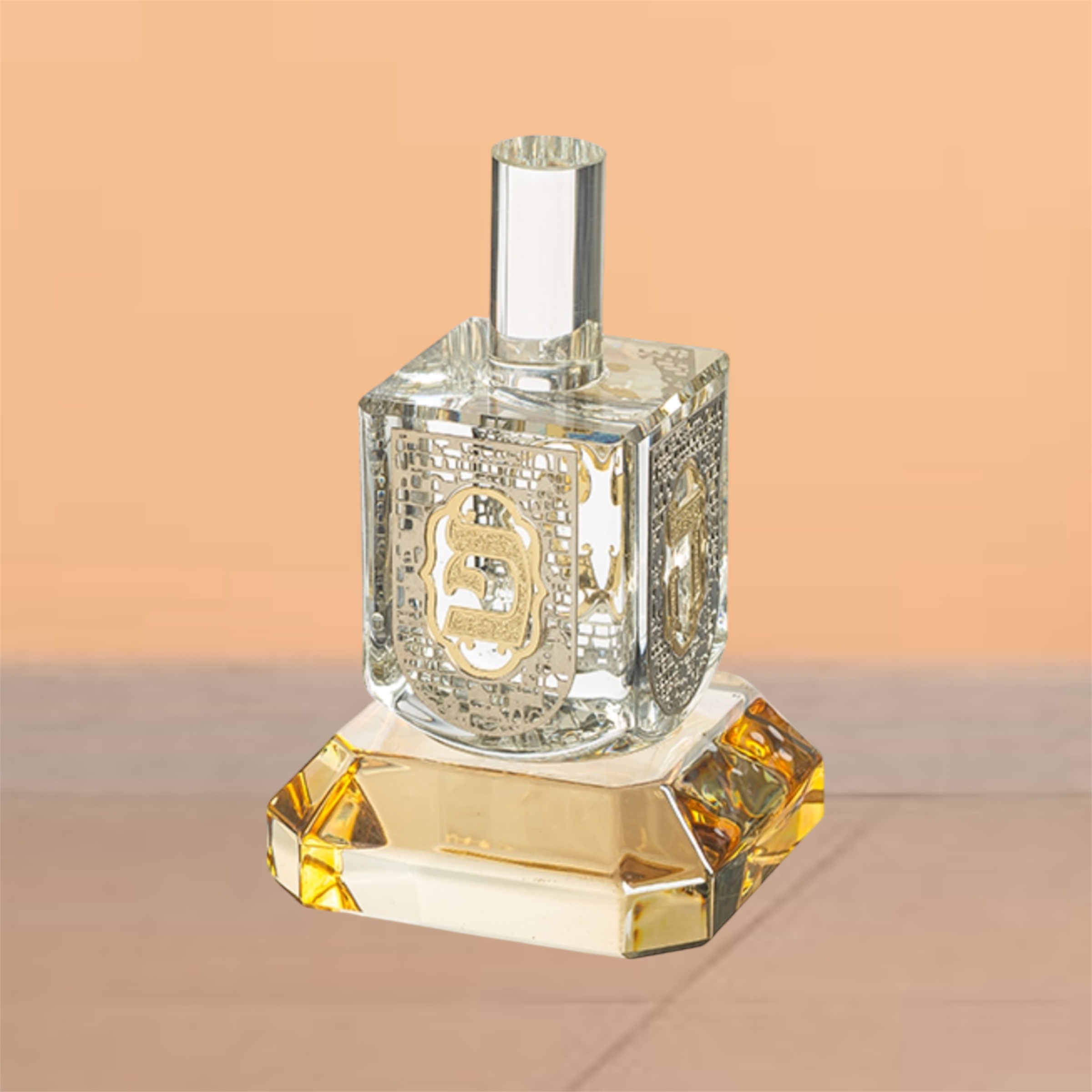 חנוכייה יוקרתית בעיצוב אלגנטי, עשויה קריסטל נוצץ ואיכותי שמפזר אור בצורה מרהיבה בכל הדלקה.