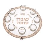 צלחת עגולה מהודרת לראש השנה בקוטר 40 ס”מ, עשויה משילוב יוקרתי של זכוכית וקריסטל איכותי. עיצוב אלגנטי המשדרג כל שולחן חג, מושלם להגשת מנות מרכזיות, פירות, עוגות וקינוחים. הצלחת בעלת מראה ייחודי ומרשים, אידאלית לאירוח חגיגי וגם כמתנה מיוחדת לראש השנה.